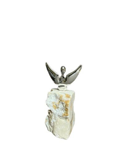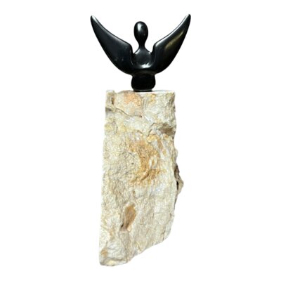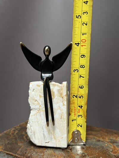 Angel figure in bronze on unique stone 3″ mounted on a unique stone.