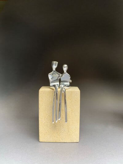DAD Style 2 (with arm) is a variation in the sculptural style of the Dad figure. The Dad Style 2 has his arm loving around the children or the mom. It is also the male partner for the couple “Caress.” Start by selecting from the options for the dad (with arm or without) then add the matching mom and kids. Don’t forget your family dog and cat! The figure measures 4.5” or 115 mm from head to toe.