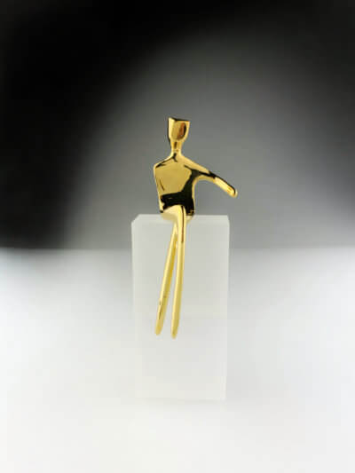 The sculptures are created using traditional lost wax casting. Only the highest fine art quality bronze is used. The figures are individually finished in either classic black patina with polished highlights, brushed bronze, or silver-plated bronze.