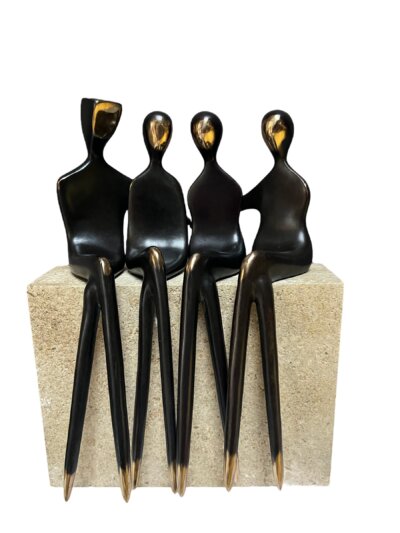 The sculptures are created using traditional lost wax casting. Only the highest fine art quality bronze is used. The figures are individually finished in either classic black patina with polished highlights, brushed bronze, or silver-plated bronze.