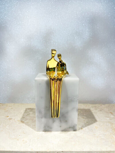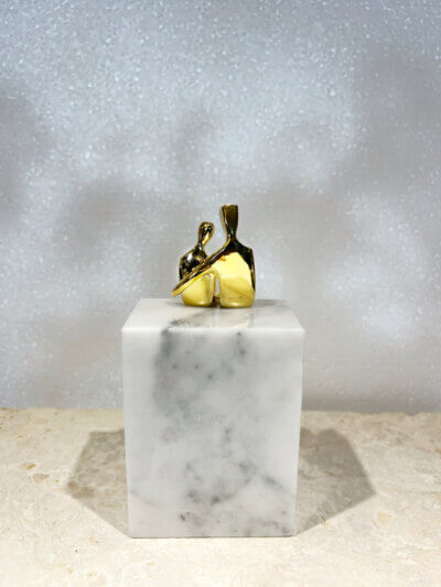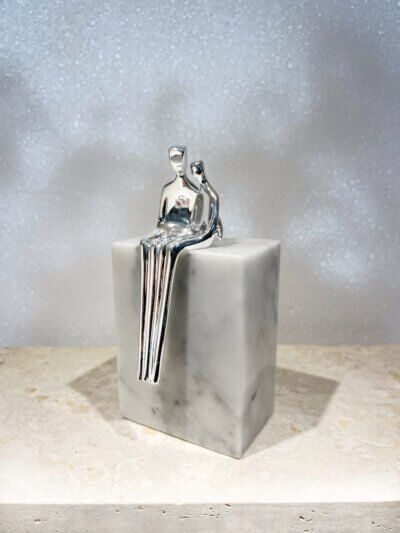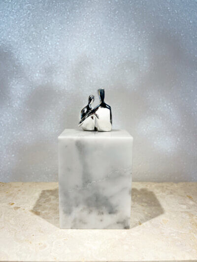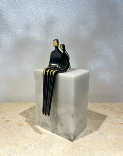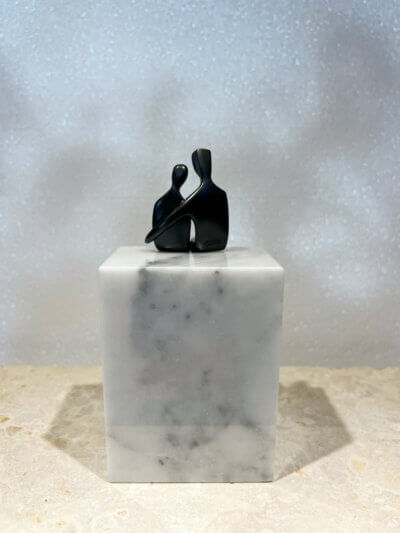 Close to Me 4.5″ bronze sculpture represents a harmonious and caring relationship. The figures measure 4.5” from head to toe, with an inch or two added to the height if a stone base is selected for purchase.