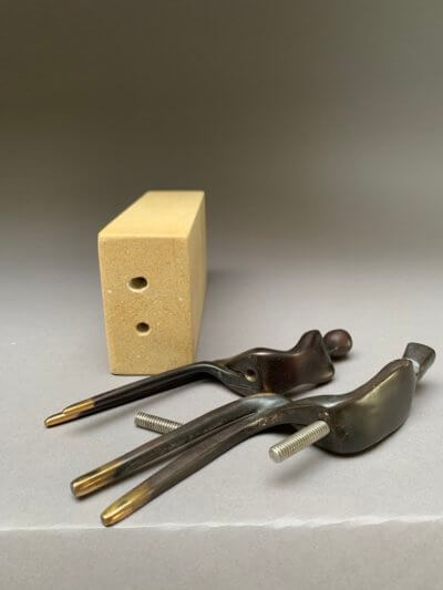 The sculptures are created using traditional lost wax casting. Only the highest fine art quality bronze is used. The figures are individually finished in either classic black patina with polished highlights, brushed bronze, or silver-plated bronze.