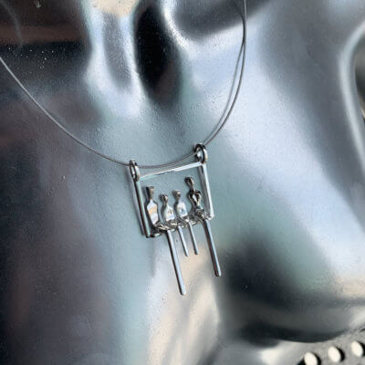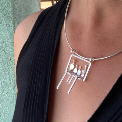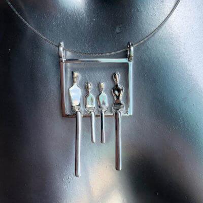 The perfect family of four in sterling silver. Jewelry to wear your family on your heart. Elegant pendant in MCM style to show your family off. A gift pendant for the silver anniversary, maybe. The pendant comes with a simple leather chain.