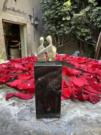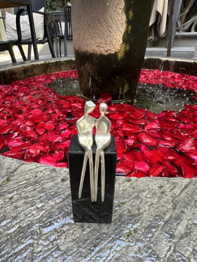 Miniature Caress is a sterling silver sculpture in 3″. The ultimate 25th anniversary gift. Small yet precious. It’s smaller than the signature collection version of Caress. Miniature Caress in Sterling Silver figures are permanently mounted on a travertine or onyx stone base. No Customizations or children figures for these small couples.