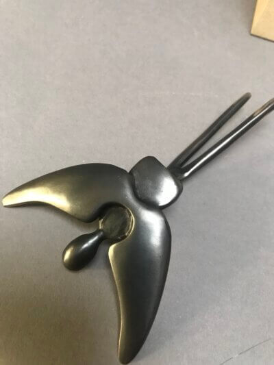 The sculptures are created using traditional lost wax casting. Only the highest fine art quality bronze is used. The figures are individually finished in either classic black patina with polished highlights, brushed bronze, or silver-plated bronze.