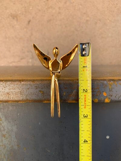 Small Angel in Gold plated bronze 3″ will sit on any ledge. A tiny magnet and adhesive glue dot will keep it seated. The little angel can watch over you while you work at your desk. Maybe your angel will protect a loved one, be placed on a shelf. Small Angel in Gold plated bronze 3″ guardian angel is going to be a permanent part of our miniature collection. This lovely angel also comes in a bronze and silver plate. It’s 14K gold plated on bronze and anti tarnish coating of 0.5 micron.