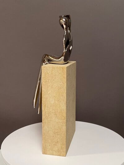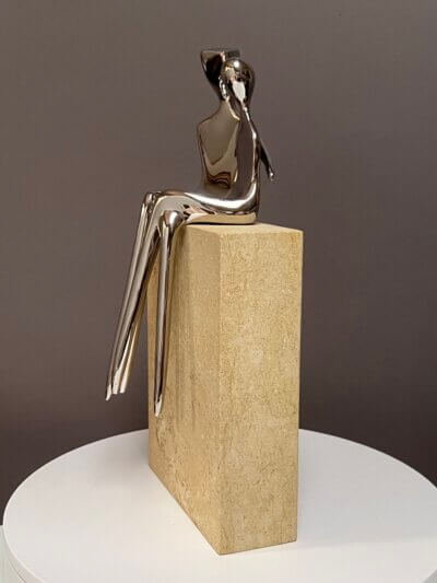 The sculptures are created using traditional lost wax casting. Only the highest fine art quality bronze is used. The figures are individually finished in either classic black patina with polished highlights, brushed bronze, or silver-plated bronze.