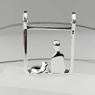 A girl and her kitty cat. Woman with Cat in silver is a pendant for the cat lover. Perfect gift for the cat sitter! If you or a friend has lost their cat it can also be a thoughtful pet memorial gift.